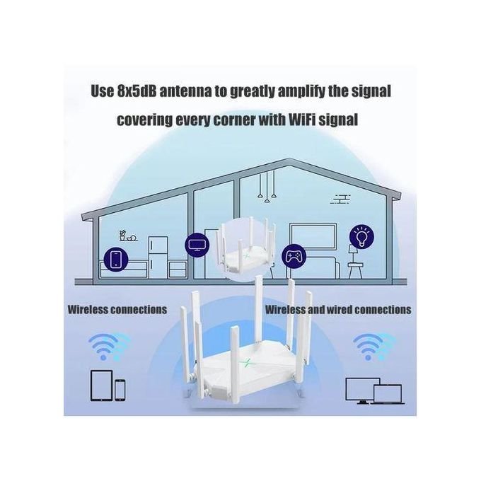 1200M Routeur 5G Double Bande, Amplificateur De Signal Réseau WiFi 8 Antennes