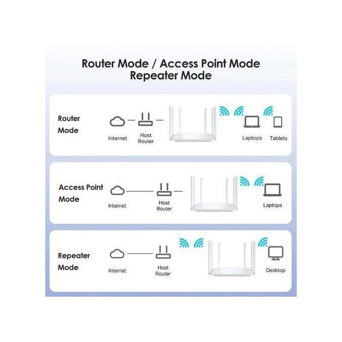 fonctionnalité:Avec le Wi-Fi double bande haut débit, vous pouvez faire fonctionner plusieurs appareils simultanément sans interruption. La puissante bande Wi-Fi de 2,4 GHz (300 Mbps) est parfaite pour la messagerie électronique, la navigation sur le Web et l’écoute de musique. La bande Wi-Fi 5 GHz atteint 867 Mbps, vous pouvez donc jouer et diffuser en ligne en même temps.1 port WAN Gigabit et 4 ports LAN Gigabit sont 10 fois plus rapides qu’une connexion Ethernet standard, afin que tous les membres de la famille puissent profiter d’Internet haut débit sur leurs téléphones, tablettes et ordinateurs portables en même temps.4 antennes externes améliorent considérablement les performances de transmission, transmettant les signaux WiFi dans tous les coins de la maison.La technologie MU-MIMO transmet des données à plusieurs appareils simultanément, réduisant ainsi la latence, augmentant le débit Wi-Fi pour chaque appareil et rendant chaque flux de données plus efficace.La technologie Beamforming concentre le Wi-Fi sur les appareils pour créer une connexion plus forte.Il utilise des trous de dissipation thermique pour dissiper rapidement la chaleur et garantir un fonctionnement fiable à long terme du routeur.