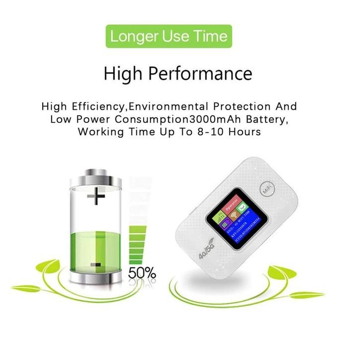 4. Autonomie prolongée de la batterie: avec une batterie au lithium intégrée de 3000mAh, le hotspot mobile de poche offre plus de 50 heures de temps d’attente et jusqu’à 8 heures de fonctionnement continu, facilitant une expérience d’accès à internet plus rapide, plus pratique et plus rapide sur la route.