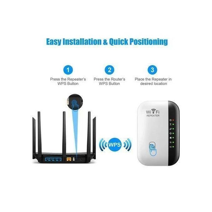 Le WiFi extender prend en charge la fonction WPS (connectez votre routeur en appuyant sur les boutons du répéteur et du routeur seul). L’extension de la couverture sans fil dans tous les réseaux WLAN;
