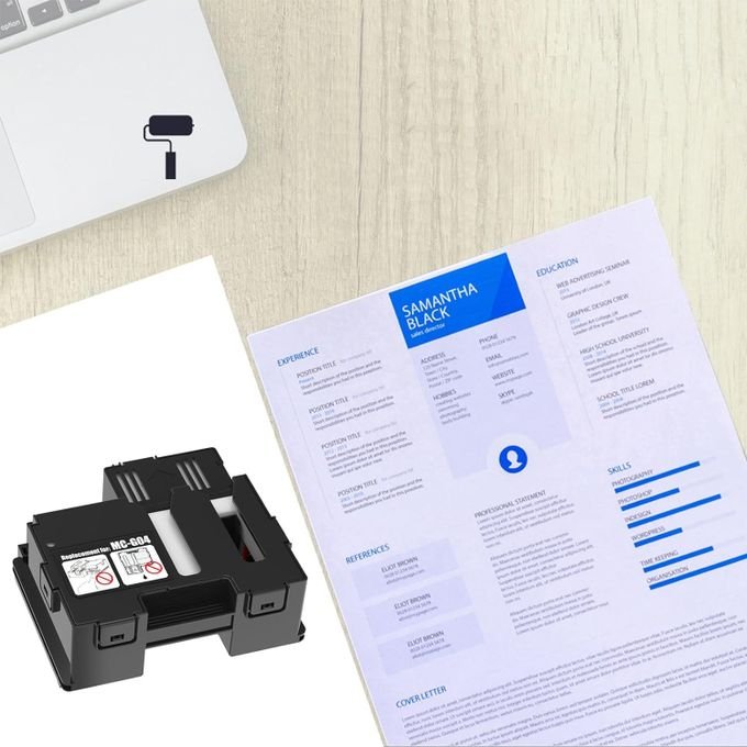 de la tête d’impression et l’excès d’encre pulvérisée. Lorsque la cartouche de maintenance est pleine et doit être remplacée, vous en êtes informé via l’écran de votre imprimante. Remplacez occasionnellement la cartouche de maintenance pour garantir une impression de haute qualité et un fonctionnement fluide.
