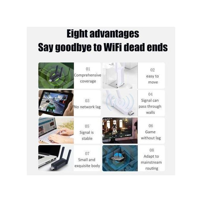 WiFi Adaptateur WiFi USB Sans Fil Amplificateur De Signal WiFi Double Bande 300Mbps Pour PC Portable Windows