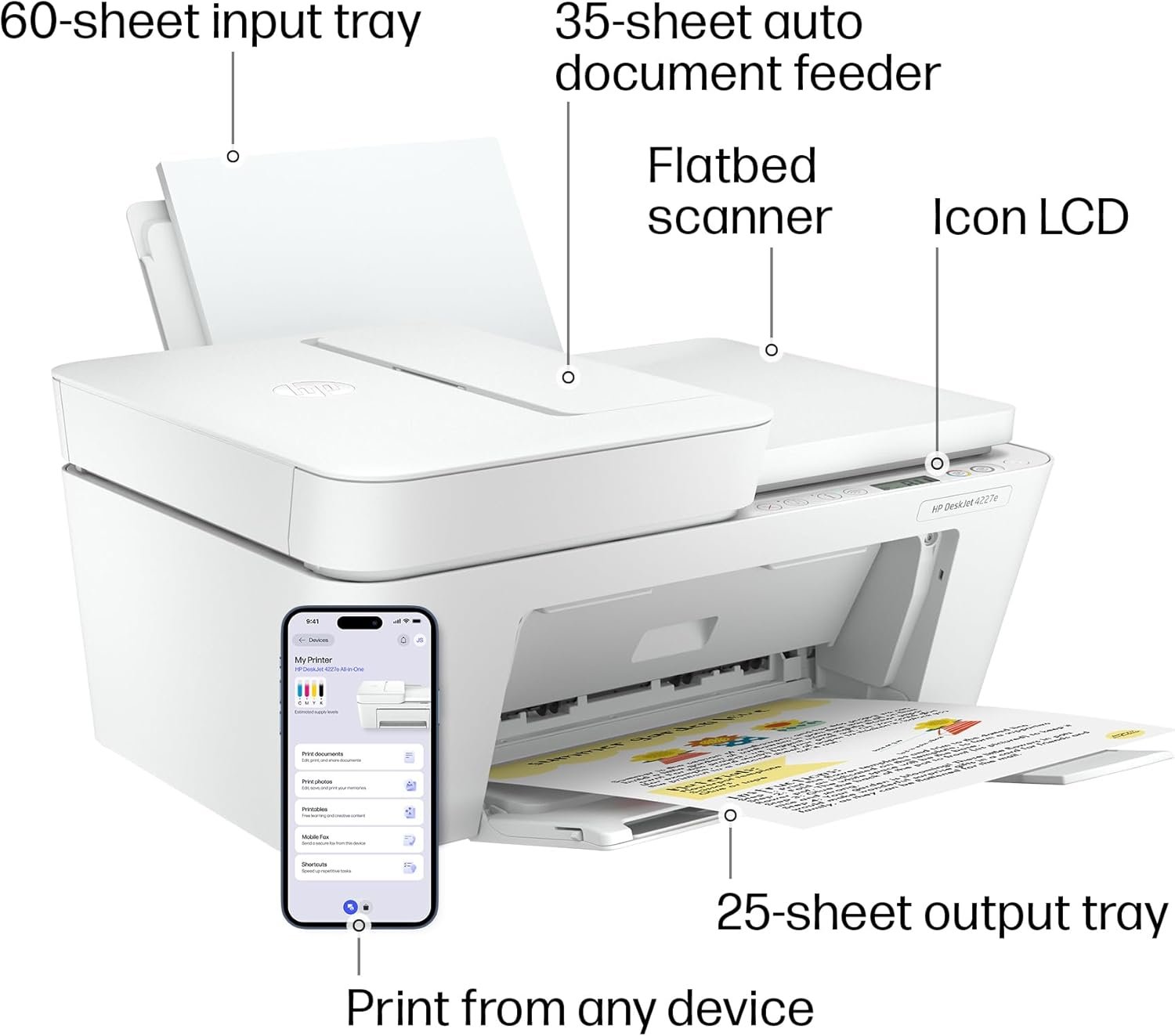HP DeskJet 4227e Wireless All-in-One Color Inkjet Printer, Scanner, Copier, Best-for-Home, 3 Month Instant Ink Trial Included, AI-Enabled (6W7F0A)