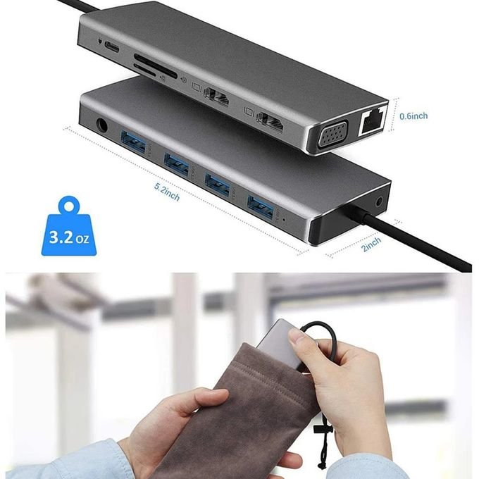 Hub USB 12 en 1 de type C vers HDTV avec 2 ports HDMI ADAPTATEUR DOCKING STATION
