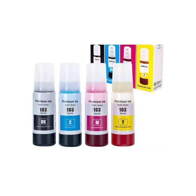 • Rendement très élevé : Les bouteilles d’encre 103 ont une grande capacité (généralement 65 ml par couleur), ce qui se traduit par un nombre impressionnant de pages imprimées avant de devoir recharger. Cela signifie moins de recharges fréquentes et plus de tranquillité d’esprit.