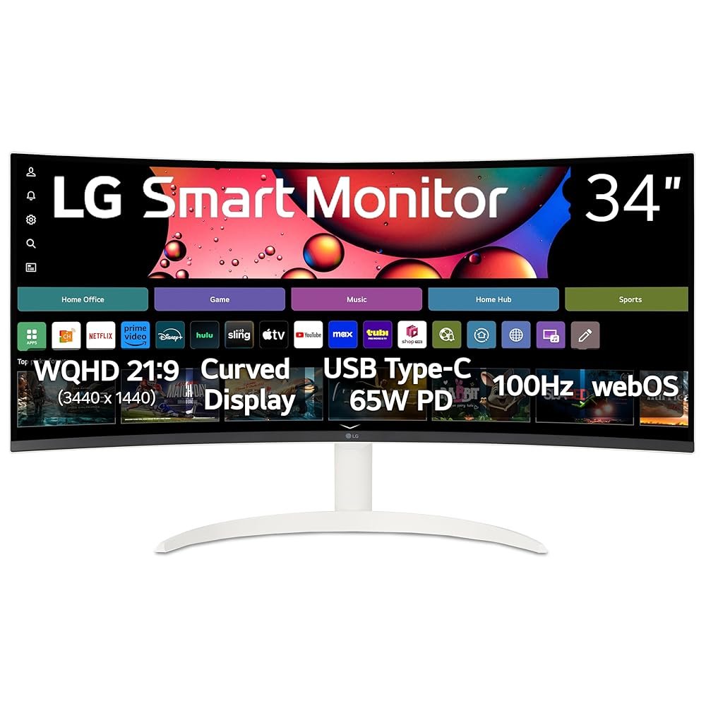 LG 34SR63QA-W 34 inch Smart Curved Monitor with Streaming TV, QHD 1440p, UltraWide Screen, USB Type-C 65W PD, 1800R, webOS, HDR10, 100Hz, Built-in Speaker, AirPlay2, Screen…