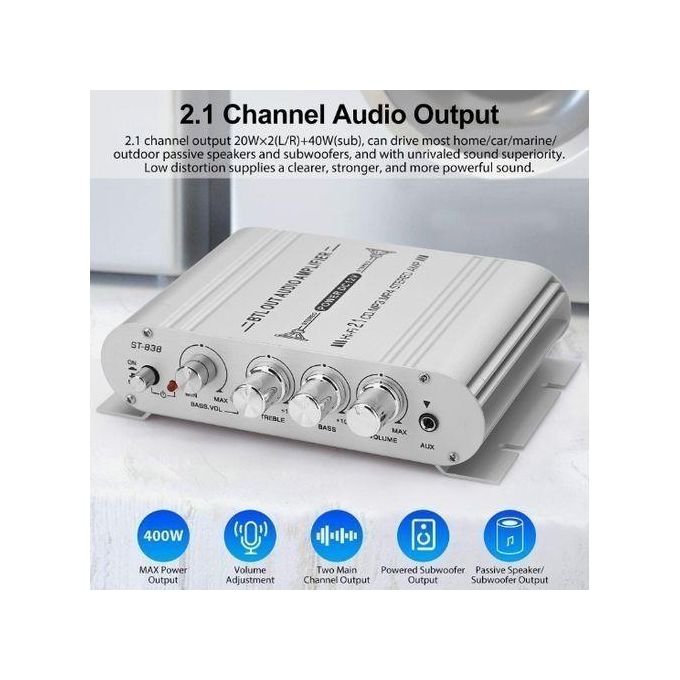 Mini Amplificateur Hi-Fi Numérique 2.1CH Subwoofer Audio Stéréo