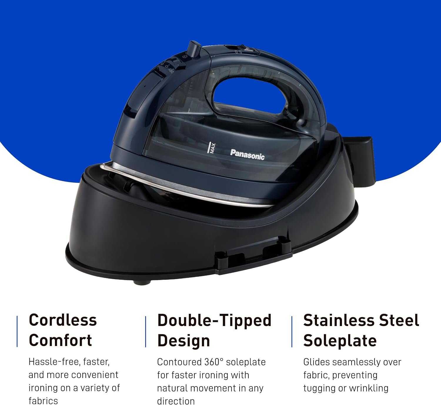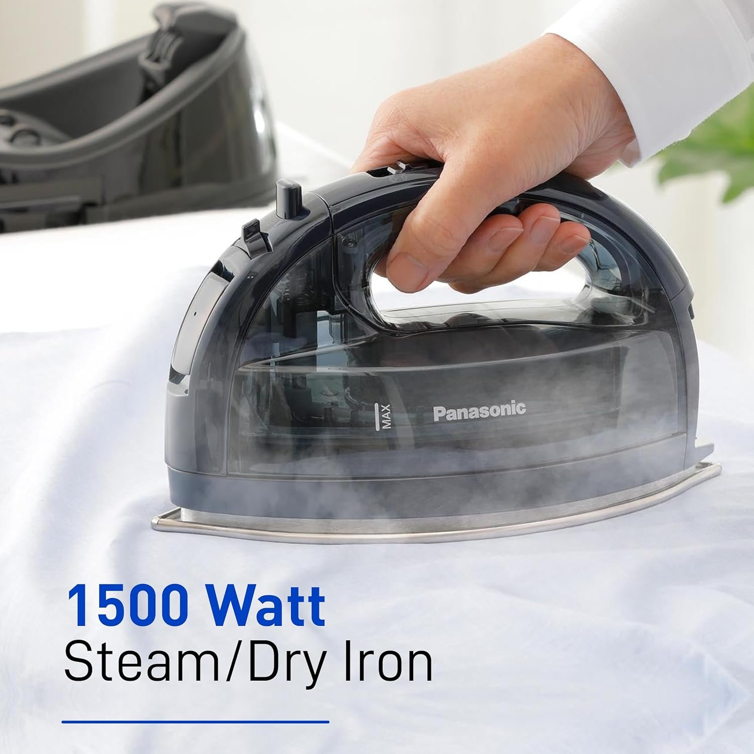 Panasonic NI-WL700A Cordless Steam/Dry Iron, 1500W Wide Stainless Steel Plate, Black/Dark Blue