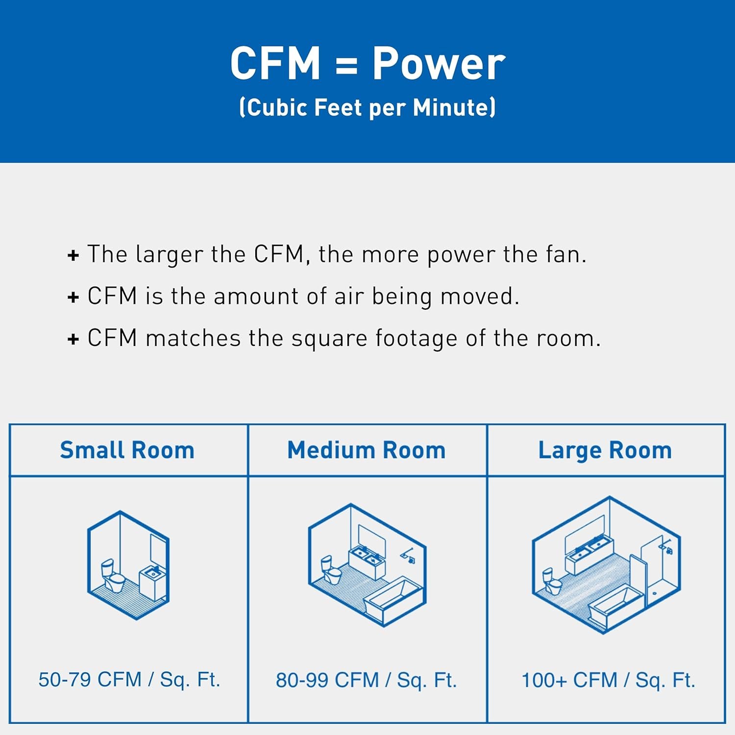• Customizable Airflow: This ultra-slim fan features Pick-A-Flow technology that allows you to select your desired airflow from 50, 80 or 110 CFM at the flip of a switch for your room size and usage needs